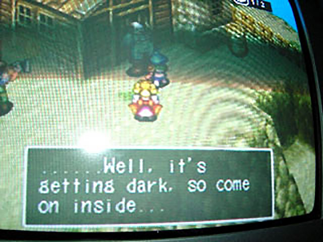 As recapping BoFIII dungeons is even less enthralling than playing through them, I’ll just cut to the interesting part – after a seemingly endless barrage of random battles and nonsensically-placed treasure chests containing crappy items, Alf and Miss Piggy find themselves at a small house at the top of the mountain. NPC stonemasons outside the house reveal that they “quarry the stones” – no, Crapcom, not stoners – from the mountain and use a cable car to transport them to another mountain. A kindly-looking man standing at the door wonders aloud why Alf and Miss Piggy are up in the mountains by themselves, then shatters his concerned-old-man image by whispering “…….Well, it’s getting dark, so come on inside…” (DPC: 8). Poor, trusting, naive Miss Piggy doesn’t need to be asked twice, and before the old pedo can say “Care for some candy?”, she and Alf are making themselves at home inside his house.