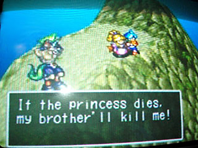 The mountain is no less bland and uninteresting than Mts. Glaus and Myrneg, save for the varied enemies, which include our old friends the nutty Acorn People and crusty goo-oozing penises (Tar Men) as well as new foes such as Orcs and a palette-swap of the Gongheads. I’m sure some of Crapcom’s staff must be Bongheads to come up with these enemies. I spend an insane amount of time levelling up and accumulating zenny, because weapons and armor will soon become ridiculously expensive, and the difficulty of battles will soon skyrocket faster than Squall’s heartbeat when Seifer enters the room I just love playing this game so much.