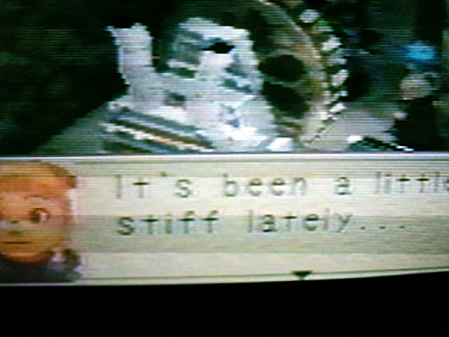 Before I can do this, however, I’m subjected to the most patronising briefing EVAR. First, the random NPC woman explains that turning the wheel is done by rotating the d-pad on the controller rapidly until Ruley begins to sweat. This indicates that he’s getting tired (funny, I thought it was just Sandy breathing down his neck). Then, I’m treated to a long-winded onscreen instruction, which reiterates almost exactly what the stupid random woman just said. Finally, I’m asked if I want to read some hints on how to turn the wheel.