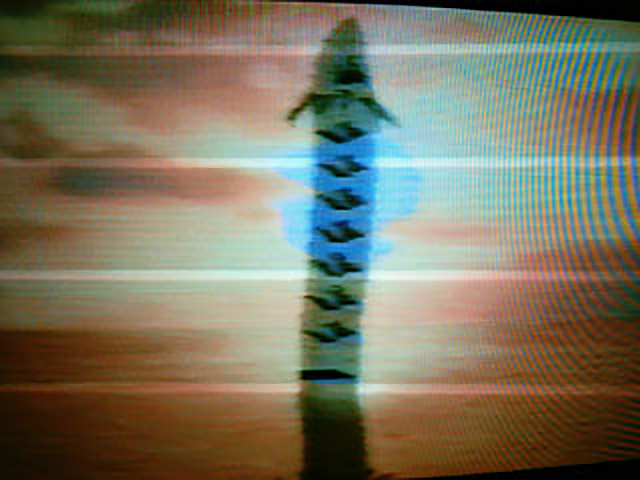 Back on the Not!World Map, I proceed for the grand total of eight paces before the dreaded “!” bubble rears its ugly head once again. This time, it leads to a cliff overlooking the sea. We see a nice picture of the sunset and, just in case we haven’t noticed the ocean, there is a cacophany of deafening typical ‘sea sounds’. The party enters the area, which is strewn with fragments of broken pillars, only a few of which remain standing. TikTok, ever the attention-seeker, vacuum-cleans her way onscreen before jumping on top of a rock. Meanwhile, Clay exposits that “There’s a village called Kyria to the east of here. We should be able to get to Synesta from there.” I know I’m not at all confused by these various towns, and just why in the hell we’re going to visit them. Oh, right, the party is trying to find Elina (Sandy’s sister, remember?), finally continuing the Plotline That Time Forgot.