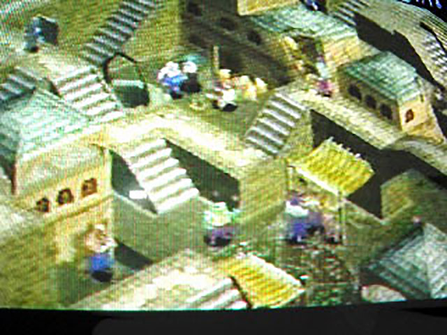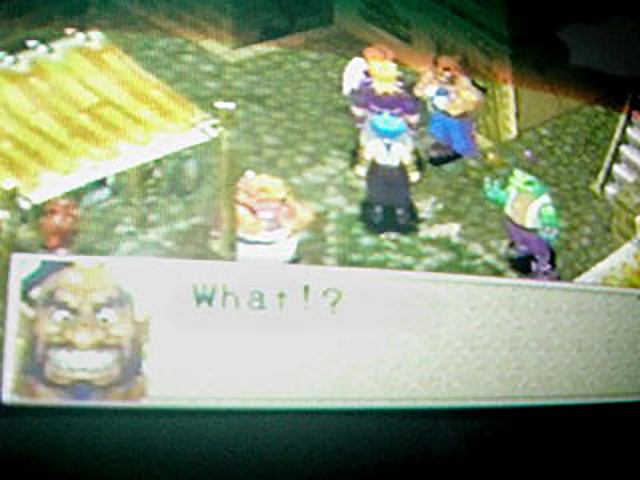 Clay asks Sister Lyta if she knows where to find Marlok (amazingly, his name isn’t in red text this time). Before Lyta can open her mouth, bratty Chino chirps that Marlok owns the big house in the middle of town, complete with a musclebound bodyguard. Hearing this last part, Ruley senses feelings he’s never known before welling up inside him. Without delay, the party decide to pay a little visit to Marlok, in the hopes of obtaining new information on Elina’s disappearance. And, in Ruley’s case, to check out his hot guard. Even though Marlok’s house is located mere feet away from the orphanage, it takes me almost a minute to get to it due to the plethora of obstacles in my way. Why don’t BoF architects try building a town with a normal layout? They should try being on this end of the controller, then maybe they wouldn’t be so quick to incorporate all those arches and walkways and alleys and fuck-knows-what-else into their designs.