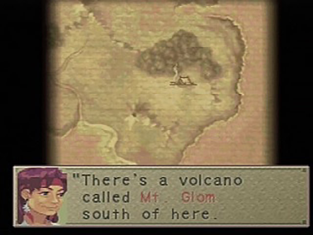 “It’ll work!” Tarhn says confidently, practically basking in her own genius. She continues that she knows “just the person” to help put this totally foolproof and amazing plan into action. As we see another of those useless map overlays, she reveals that there’s a volcano called Mt. Glom to the south. That’s handy, because Ruley is considering throwing himself into it. Apparently this volcano is home to a blacksmith who can forge a copy of the King’s Sword. I’m sure this is going to work, you guys! Incidentally, I very nearly renamed Mt Glom to Mt Glomp, but then I saw sense and remembered that glomping is pretty much the polar opposite reaction I have to anything relating to this game. “Someone back at Worent should be able to tell you how to get to Mt. Glom,” Tarhn says. Or, you know, she could do it, since she’s apparently the font of all wisdom and everything. Oh, right, that would shave a few minutes off the game length, and we can’t have that.