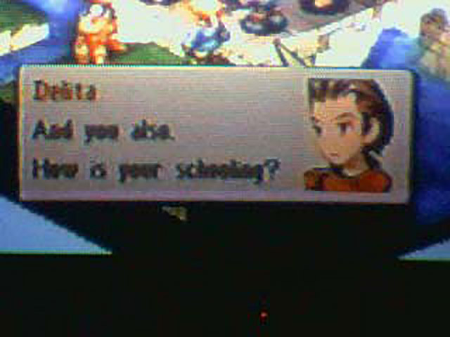Gideon congratulates Cesario for killing the Happy Sunshine Cult, and even manages to congratulate Delita, who was there, of course, but doesn’t get any praise under usual circumstances because he is, duh, a commoner. Delita and Rinoa, his sister, chat about school for awhile until Gideon interrupts them to announce that he’s going to go catch some thieves in Dorter. As he leaves, Gideon turns and calls over his shoulder, “Guarding a castle is such boring work, don’t you think?” Methinks he might be trying to tell them something, and if that subtle hint doesn’t work, maybe the Neon Sign that says GO SAVE THE MARQUIS!!! will.