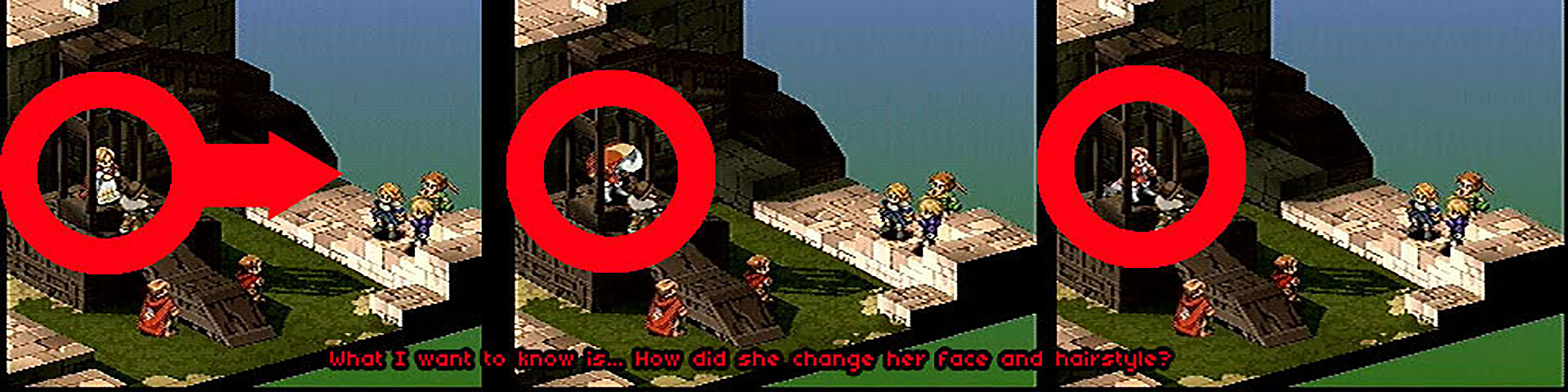 As the Dearly Departed Delita turns to leave, Cesario asks him what he plans to do, exactly. “[W!LL], [B!LL], your brothers, everyone… [They] haven’t noticed they’re all swept up in the same flow. I’m just going against it. That’s all…” the Dearly Departed Delita non-answers. The Dearly Departed Delita tells Cesario that, as long as they’re both looking for the Princess and the Holy Stones, he’ll see Cesario again, “if [they] live that long.” The Dearly Departed Delita walks away. Cesario looks conflicted. That scene was pointless.