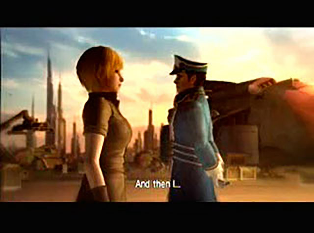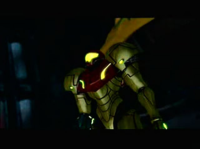 We shift to a flashback of Adam commanding his troops in battle, and Samus reiterates: “Yes, there was a time when I was enrolled in the Galactic Federation Army.” We see a younger, shoulder-pad-less, Power Suit Samus running across the battlefield, somersaulting over and firing on enemies. The scene then shifts to a different flashback, where a young, butch Samus in olive drab fatigues walks away from an Adam dressed in a fabulous blue hat and coat. “And then I… well, I was young and inexperienced… as the result of a certain incident, I left Adam’s command and set out on my path as a solitary bounty hunter.” A certain incident, eh? That sounds like something that we’ll probably be revisiting in the climax of the game. Also, who exactly is it that Samus is keeping this “certain incident” a secret from? Unlike the original wankese from FFX, we’re not using these narratives to work toward any specific point in time, so I guess I have to stick with my original hypothesis that Samus is just talking to herself. And now she’s keeping secrets from herself. That’s normal.