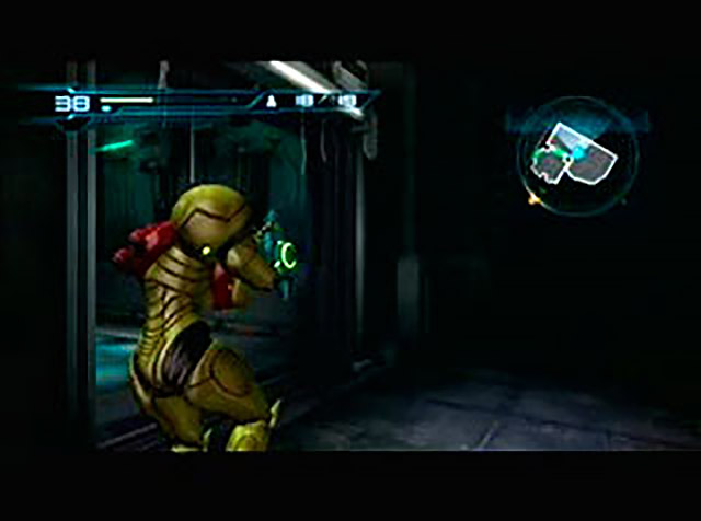 Samus wanks, “The large, cagelike booth looked like something had been raised in it, and in one corner was the miserable form of a researcher’s corpse.” If I had known that Samus was going to step in and recap this entire scene for me, I wouldn’t even have bothered describing it in the last paragraph. Assessing the body, Samus somehow divines that Joe Bloggs and John Doe were killed by two different creatures, and continues, “as I studied the violence this creature had wrought, I felt something in the air– the presence of a dark intelligence.” To which I can only say, the way things have been going, I don’t think Samus would know intelligence if it snuck up behind her and attacked her during a cutscene.