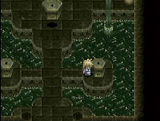 The duo continue through the Tunnel of Dull, as I prop my eyelids open with matchsticks. God, even the random battle monsters are nothing more interesting than generic slugs and will-o-wisps, which are quickly vanquished by Mary (her presence in battle renders Aslan pretty much redundant, q’uelle surprise). Eventually they emerge in the lowest depths of the temple. It looks generically temple-y. And now the battle monsters are no longer mere slugs, but…Jellies. We’ve entered dangerous territory, folks. Soon, Aslan and Mary come across a roughly cross-shaped stone walkway over a body of nicely sparkling water. At the west and east points of the cross stand small stone monoliths with a single hole in the top (and indeed, if you squint, they look vaguely phallic. But we’re talking small penises here). A larger penis monolith levitates at the north point of the cross. Yes, this is relevant. As Aslan and Mary get closer, they see that a young woman is trapped in a transparent trapezohedron floating above the larger penis monolith. Okay, it probably isn’t a trapezohedron — I can’t make out how many sides it has — but I just liked the alliteration, okay? Cut me some slack over here. “Rutee!” Mary cries, telling us that the chick in the trap is her friend and not just some random girl. I sure was confused until now. Rutee demands to know where Mary ran off to. Uh, to get help? “Mary, is this your friend?” Aslan asks. No, she’s her fucking gardener. “Let’s save the introductions for later! Just get me out of here now!!!” Rutee interrupts, sparing us all from more of Aslan’s babbling. Wankfest averted…for now.