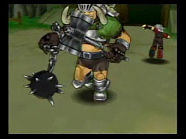 As always, the teenagers easily overpower the trained soldiers. The clones run away faster than Squall at Rinoa’s surprise wedding, making way for a hulking armored dude wielding a hammer and a huge-ass flail. I have no idea where Lord Botta went off to during all this. Nor do I have any idea why this giant flail guy has to be wearing leather biker shorts.