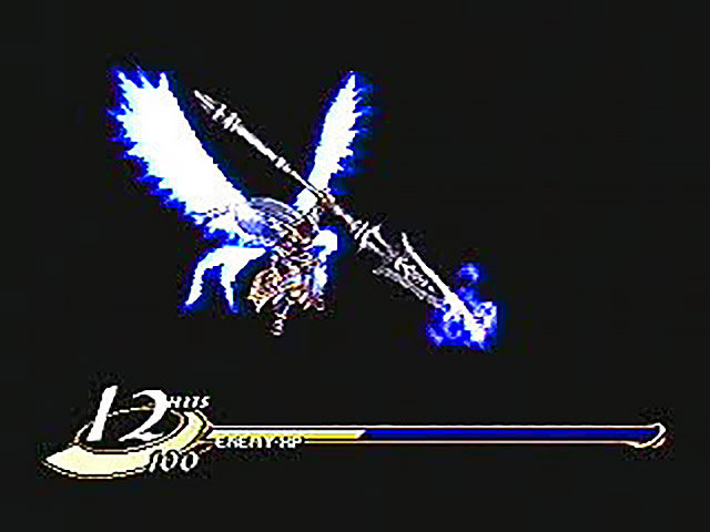 Lenneth enters the dungeon, and we see that the entrance to the ruins is actually a hole in the ceiling of the foyer. Lenneth leaps down from the roof and lands on the ground, hard. But she isn’t hurt because she’s immortal or something. I dunno. And while I’m on the subject, why doesn’t Lenneth just fly through the dungeon? I mean, we know she can fly, we’ve seen her do it countless times now. Let’s pretend that… the presence of the undead monsters saps her powers or something. That sounds good. Man, I should totally be getting a cut of that creative writer nonsense I just mentioned.