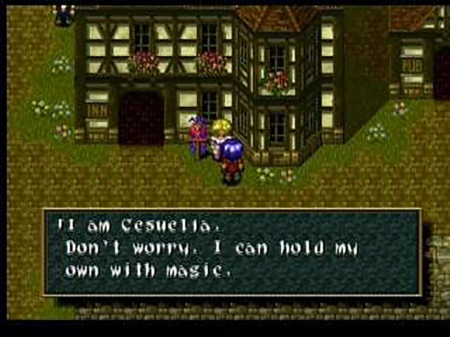 Back in Adlehyde, Rudy and friends stop for a little chat. Indy reveals that after collecting his payment, he and Scabbers will leave to raid more ruins. Cesuelia seems saddened that the Trio will be going their separate ways so soon. Never fear, Innocent One. These guys are going to be saddled with you for quite a while yet. Booking their room at the inn, Cesuelia tells her new best friends that she’ll see them at the festival tomorrow, but for now she has to get back to the castle and do princessy stuff. “After I go, I may not be able to travel with you…” she reveals. I’m sure they’re both crushed. “But I will never forget our adventure!” she continues, her angelic eyes probably brimming with pure Sue tears. Jeez, girl, you’ve known these guys for all of fifteen minutes. Clingy much? Thing is, I actually like Cesuelia a lot more than most female leads, and feel kinda guilty about laying down the snark. But then she goes and spews lines like this, and I soon get over any guilt I may have had. “I hope you guys will treat me the same way I’ve treated you,” she finally finishes, mind-bogglingly, before skipping off back to the castle.