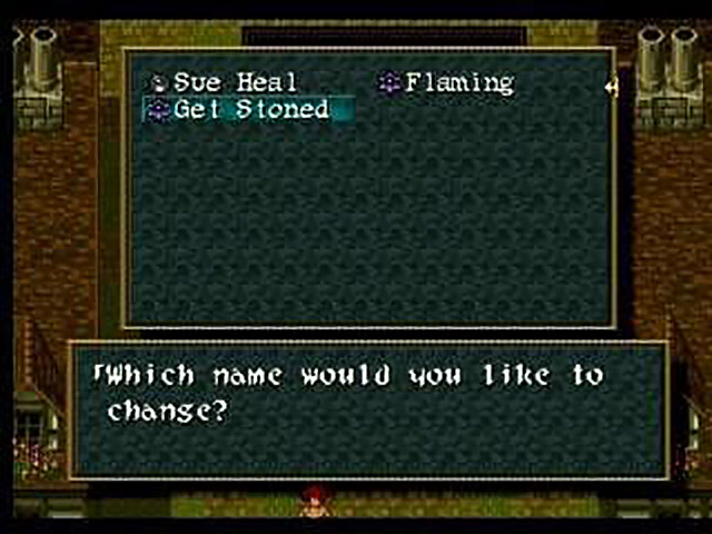 The screen whites out for a few seconds, and when colour is restored we see most of Adlehyde’s inhabitants lying dead on the ground. As creepy music plays, assorted monsters warp in and begin terrorising the few survivors. Making haste to the castle gates, Rudy and Indy find Cesuelia surrounded by a group of monsters, who are swiftly vanquished in an impromptu battle. In an unprecedented move by RPG standards, she doesn’t thank the strong manly heroes for saving her pathetic life, but instead reveals that the gates to the castle will remain open for five minutes. In this time limit the party must round up the survivors in order to get them to safety. As Cesuelia muscles her way into the party, a clock appears in the corner of the screen and begins to count down, complete with annoying ticking sound. Fuck, this is turning into an episode of 24.