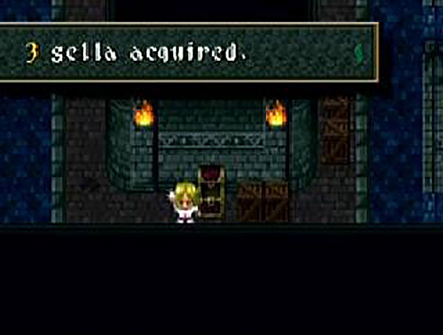 The underground passage is comprised of a network of walkways over a body of water. This wouldn’t be so bad if it weren’t for: a) every single part of the area looking exactly the same; b) each pathway being blocked with dozens of crates (inexplicably empty); or c) a random battle every time I draw breath. At least the myriad of monster encounters are easily won — the “dangerous monsters” mentioned by the head chef turn out to be no more terrifying than toads and green jellies. Tremble in fear, Dream Chasers. In the most interesting (and most annoying — imagine that) moment of this dungeon, I smash through a barricade of crates, sidetracked with battles all the way, in order to reach a chest containing…3 Gella. Fuck you, game designers.