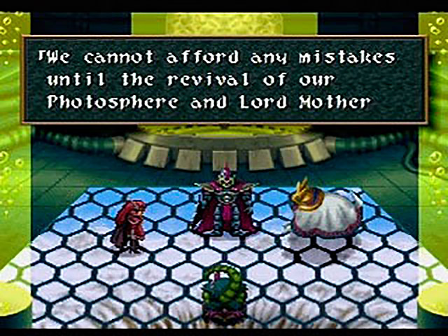 “I can feel the screams of the human fools releasing me from these cursed chains…” Mother goes on, ramming home the point that she gets off on the cries of the suffering, or something. Tearing his eyes away from his precious mama for a few scant seconds, Lord Zedd faces his subordinates and triumphantly declares “We are almost there. Feelgayer is practically ours!” Blankie isn’t totally convinced and confesses that he’s still worried about the Cliché Trio, because apparently having the means to evaporate an entire fucking town isn’t enough to deal with three incompetent wankers who have already lost two out of the three statues they were told to protect. Whatever, game designers. If your villains don’t even have confidence in their own abilities, how am I supposed to take them as a threat?