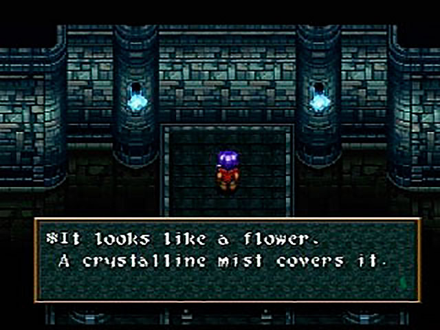 When Rudy picks up the holy grail itself, the Phantom Item Describer gushes all over it, squealing “It looks like a flower. A crystalline mist covers it.” Yup, gay. Surprisingly (or perhaps not, given the drug subtext already present in the game), it looks more like a rock than a flower. However, Rudy has more important matters to worry about — it seems picking up the bud somehow activated some kind of ancient self-destruct mechanism, as the building starts shaking and a 3-minute time limit pops up on the screen. Fuck that.