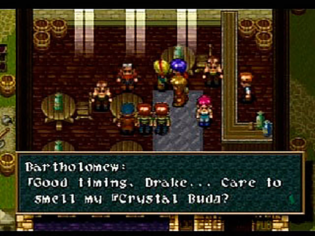 The man clearly doesn’t even know what time of day it is, giving the oft-mentioned Drake and his gang of cronies an opening to barge into the bar and start throwing around lame insults. However, they’re stopped in their tracks when Drake sees the glistening bud of his ex hated rival and starts flapping around like a fish out of water. “Good timing, Drake,” Barty gloats, his mood suddenly elevated. “Care to smell my ‘Crystal Bud’?” No, I am not making that up. Check the pink box if you don’t believe me. So, as well as being an engagement ring, a drug, or a combination of the two, it seems ‘Crystal Bud’ can also be a euphemism for ‘penis’. Not ‘PENIS’, though — that would just be silly and immature.