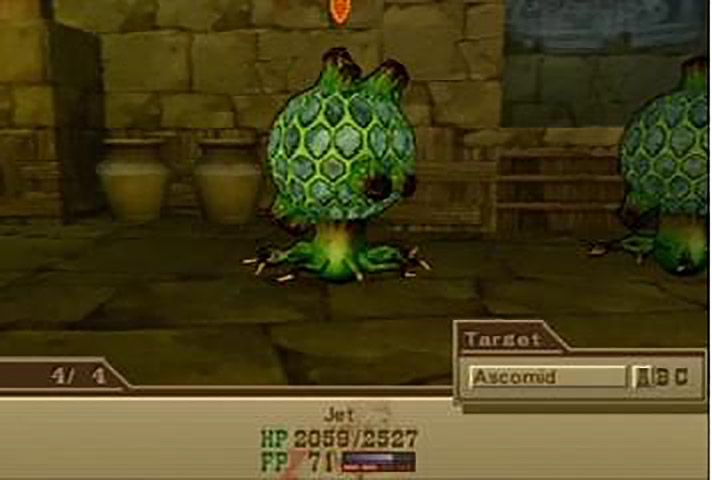 Jet ventures deeper into the vestige, contending with, among other things, more ass-reaming spikes and a rather…interesting random battle monster. Now, I know videogames in general are no stranger to phallic monsters. However, it’s not every day that one has the pleasure of fighting something that looks like a penis afflicted with a particularly virulent STD. The infected schlong even tries to spread its disease, attacking with something called “Hard Touch”. Fortunately, Jet manages to vanquish it with his own PENIS (I hope for his sake he didn’t get too close).