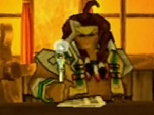 Before he ventures out into the big bad world of Feelgayer, Gallows notices one place in the colony he hasn’t yet explored — an opening in the wall of the cliff overlooking the village, with important-looking totems at either side. The passage leads to a small grotto carved out of the rock, at the centre of which is the altar he and Shane were talking about earlier. An elderly woman with tribal feathers in her hair, leaning on a walking stick, scrutinizes Gallows as he enters the cave. “So…” says the woman, in a voice I imagine to be equal parts astonished and cynical, “I see you’re back visiting the altar. Wonders will never cease…” I like her already. Of course, she’s Gallows’ and Shane’s oft-referenced Granny, Halle. “Granny! I thought you had gone off to the Southern Sanctuary,” Gallows cries. “Why? Is that where you’re headed?” Halle snaps. Gallows reacts to this question like she poked him with her walking stick, and denies even considering the prospect of going to the Southern Sanctuary. Halle thinks he doth protest too much, and Gallows, knowing she sees right through him, tries for the charm offensive: “One look at your bright smile made me forget what I was going to ask. I-I’ll come back once I remember…” Although it isn’t visible, Halle probably rolls her eyes. “I don’t know what you’re plotting in the Southern Sanctuary, but remember that it’s also called the Fallen Sanctuary…” she warns. “Your half-baked skills are no match for its traps and contrivances. And don’t you forget it.” God, I love this woman. In fact, she reminds me so much of my other favourite snarky grandmother character that I’m going to rename her in tribute.
