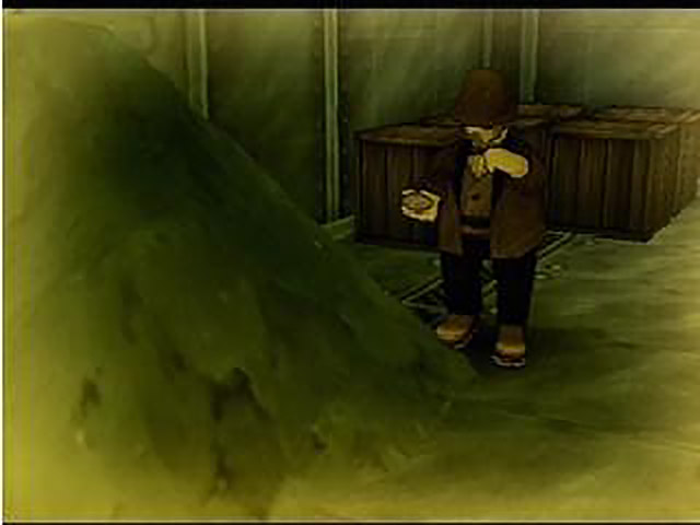 Before we find out Clive’s fate, it’s flashback-within-a-flashback time (again). Hooray! To my relief, though, this flashback is just a short, sepia-toned memory depicting some random old guy inspecting what looks like a huge pile of dirt. Exciting! Clive appears in the next shot as the old guy wags his finger at him in a stern manner, but there’s no dialogue so the context of their meeting will have to remain a mystery for now. I’m sure you’re all aching to know their history, but unfortunately it will be several hours until things become clear. Be strong, friends.