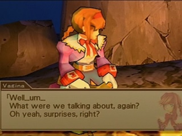Fade in on a cosy campfire scene, somewhere in the badlands surrounding Titty Twister. As Claudia gets her head down under a rock — seriously, that girl sleeps more than I do — Vagina grills Clive about his previously unmentioned wife and kid. Sheepishly rubbing the back of his neck, he insists there never seemed to be a good moment to bring it up. No man in history has ever used that excuse. Fortunately for Clive, he doesn’t have to explain why he was spotted in one of those saloons the other week, as Vagina swiftly changes the subject to Anus’s miraculous survival. Gazing deeply into the flames, she says she didn’t think it was possible for someone to transform their appearance so drastically. Someone’s never been to a drag bar. Moreover, Anus’s extreme makeover is merely a symptom of a wider problem: the Mediums, acting as the vessels for the Guardians, shit their pants when NuAnus showed up, meaning that whatever force is now inside him is a threat to the entire planet. And according to series lore, the demons are pretty much the only race that would fit the bill. This isn’t difficult to put together, so it’s fortunate that the party figures it out instantly, negating the need for a drawn-out exchange in which they painstakingly assemble all the facts. Just kidding! We still get one of those.