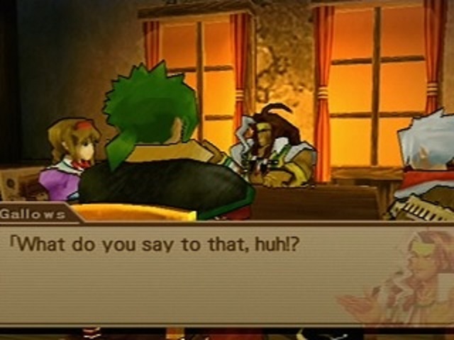 So, now we know why Leehalt stabbed Anus in the groin with Soul Edge, except not really, and also why the group is targeting the Guardians, except not really. Glad everything’s cleared up. Only just now realising that he was only kept alive to serve these guys, Anus charges forth with Soul Edge raised, which goes exceedingly well for him. Leehalt does a “Talk to the hand” gesture, mutters some gibberish, and then Anus is engulfed in a localised lightning storm. Apparently, there’s a device implanted in his body that can electrocute him when activated remotely by Leehalt or one of the others. Man, these guys thought of everything! His hopes of rebellion quashed, Anus apologises and teleports out of dodge, leaving Leehalt to declare him, “another nuisance [they] must worry about.” Well, you’ve only got yourselves to blame. If you’d listened to me and left him to die…oh, sorry, Leehalt’s still talking. He instructs M’lady to continue to work on the “fortress,” and tells Malik to go find some more Guardians to leech off of (after taking some time to recuperate from his recent ordeal, of course). As for Leehalt himself? He declares, “I will have the Huskarls on standby. No Drifters shall interfere with our plans anymore…” The director wisely chooses to end the scene before he can start MWA HA HA-ing, and we cut back to the party doing what they do best in Titty Twister’s saloon.